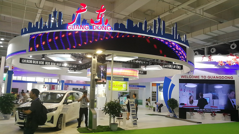 值得一提的是,在本届兰洽会上,918博天堂展览设计集团作为广州馆服务商助力广东参展。在本次展厅设计上,我们采用科技蓝和紫罗兰的紫色作为主题颜色,蓝色是永恒的象征,亦是科技的象征,紫色是尊贵的象征,蓝紫相结合可以更好的刺激观众的视觉,引人注目。