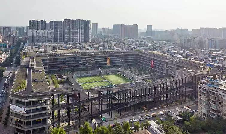 中国有两个项目入选,其中一个是还未建成的崇明自行车主题公园,另一个是四川的家琨建筑设计事务所在成都建成的西村·贝森大院。前者是崇明近年来力推的生态旅游项目的一部分,其中最为惹眼的螺旋状白色建筑体,在建筑的边缘设置了宽大的骑行车道,人们可以骑着自行车来回于地面与屋顶之间。后者则融入在城市之中,庞大的建筑体像是一座巨大院落,人们可以通过架空的休闲跑道骑着车攀上屋顶,并绕着屋顶的车道环游整座院落。